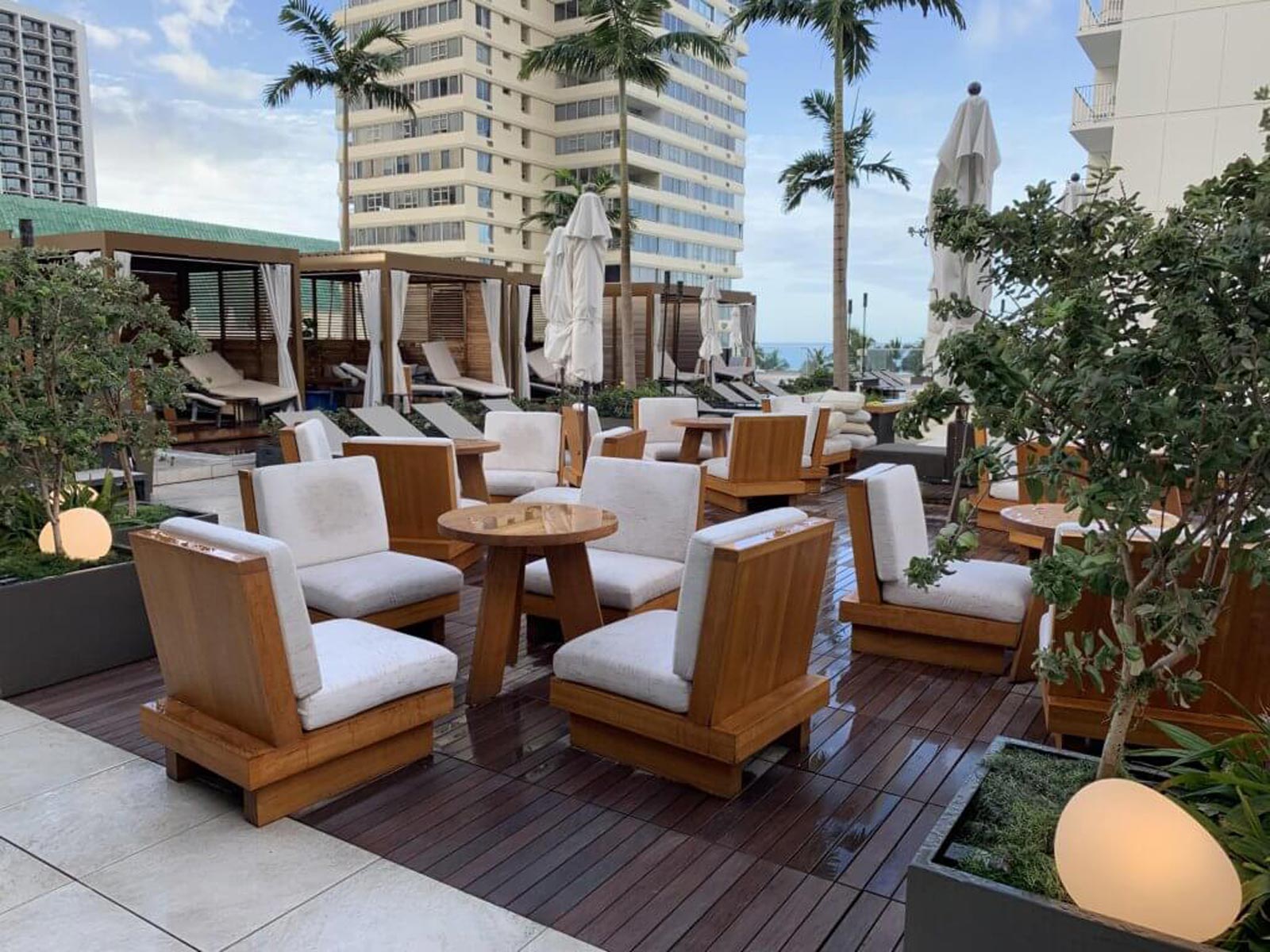 Kenco Hospitality can provide exterior cushions used in cabana and deck or beachfronts. We offer acrylic solution dyed fabric as well as exterior polyester used for cushions or pillows built to withstand the exterior environmental conditions.